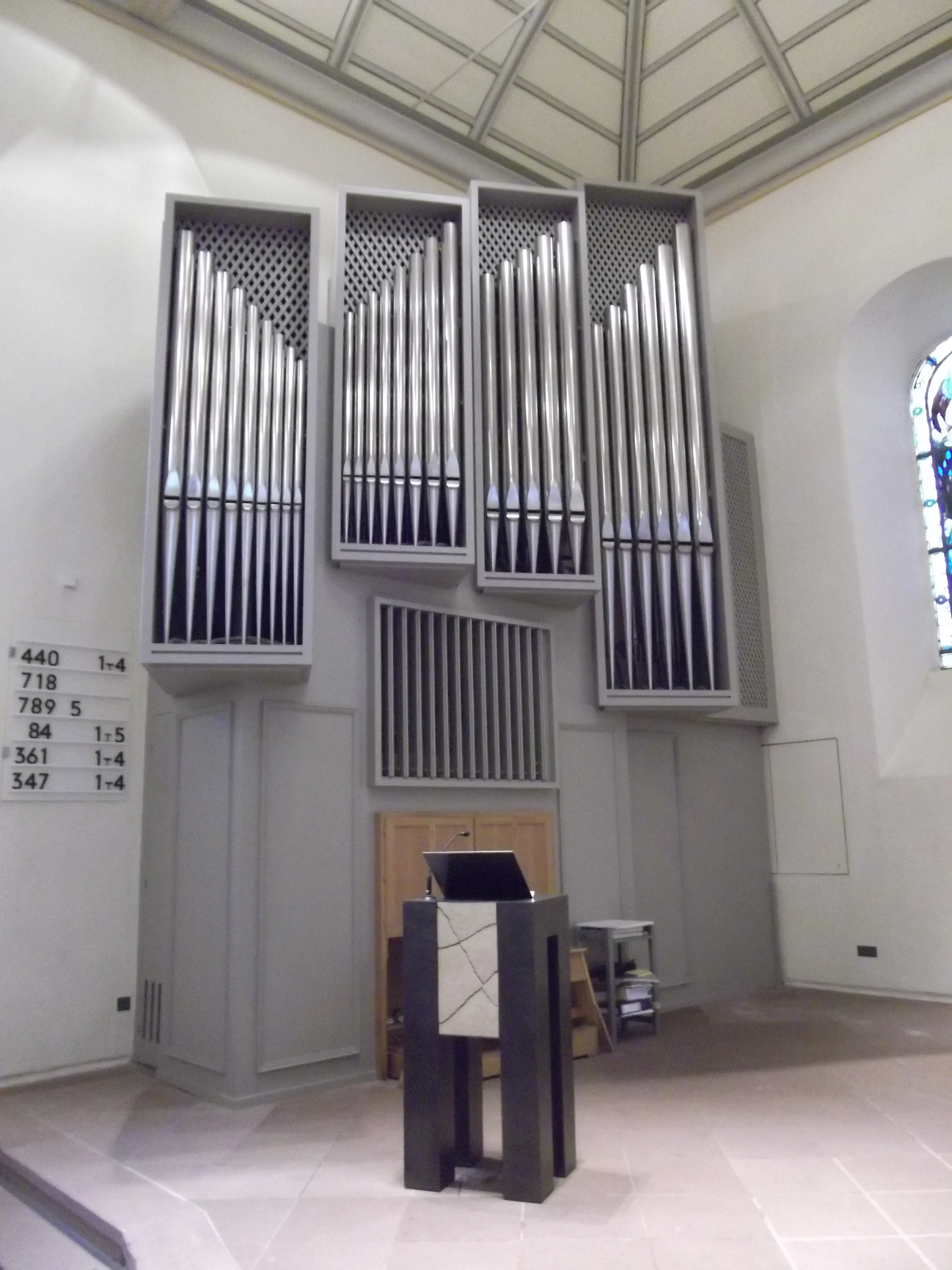 Das vollmechanische Instrument verfügt über 16 Register auf zwei Manualen und Pedal.